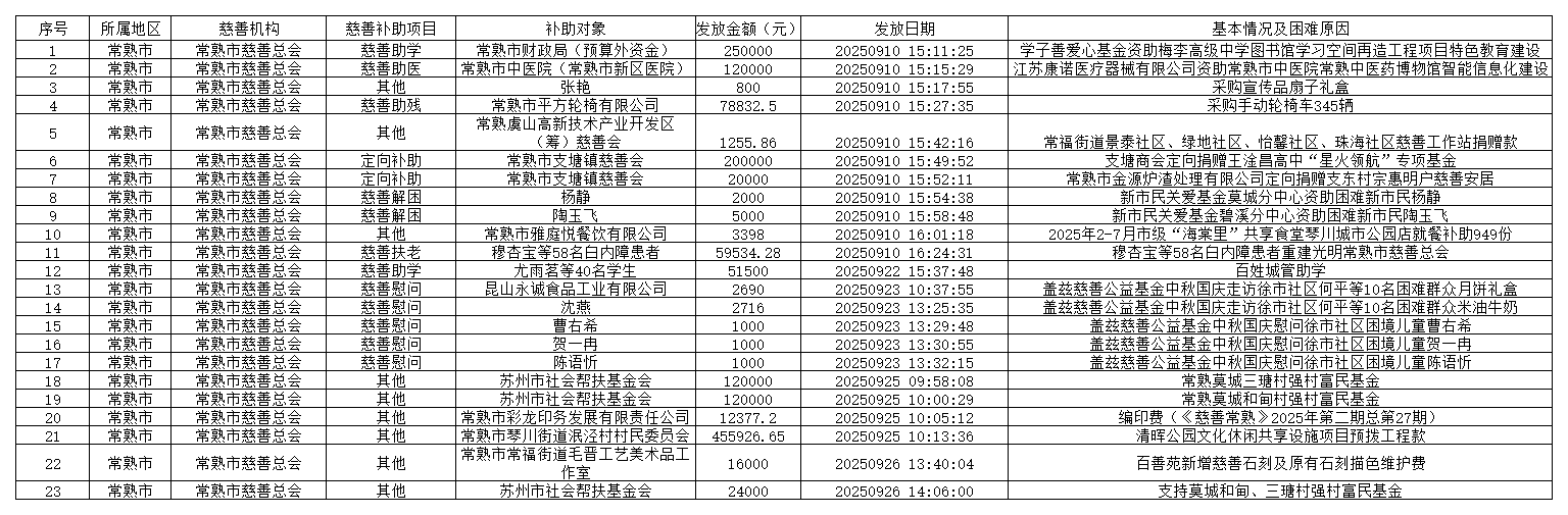 常熟市慈善总会关于2025年9月资金使用明细的公示